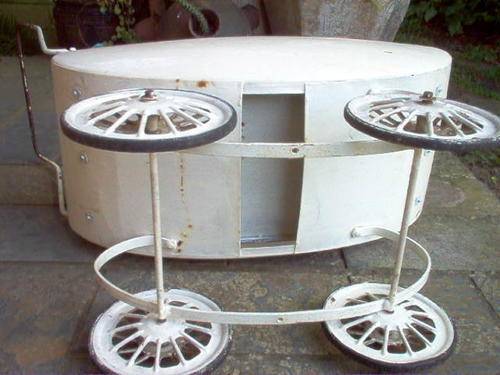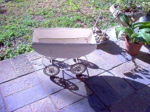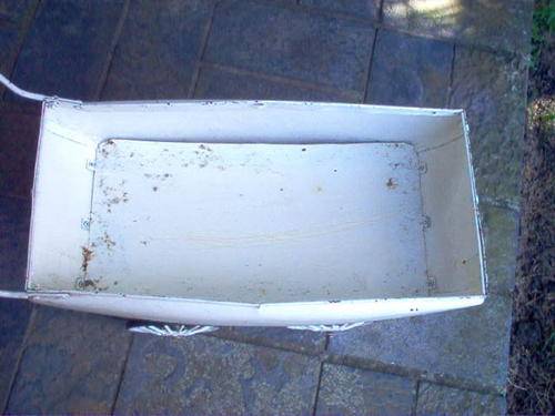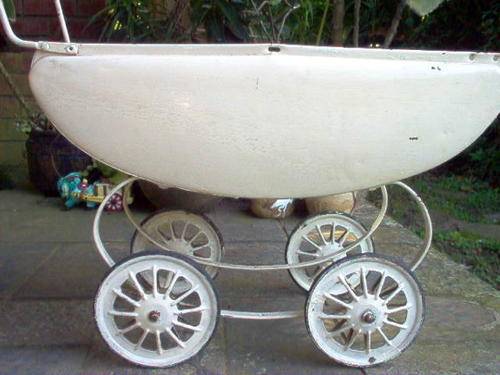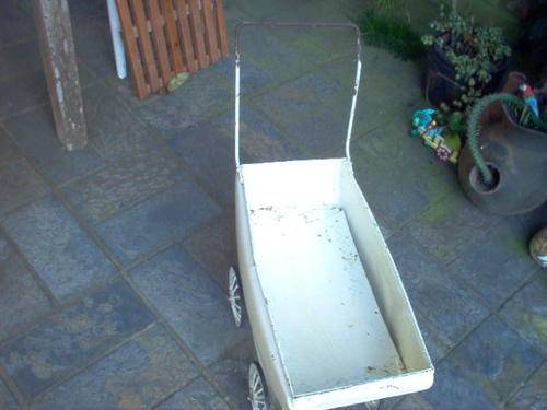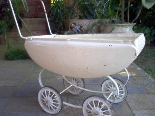 A WONDERFUL OLD METAL DOLL"s PRAM WHITE IN COLOUR,SOME RUST AS SHOWN IN PHOTO AND MEASURING 36CM HIGH FROM BASE OF WHEEL TO TOP OF CARRIAGE, 50CM LONG AND 25CM WIDE. WITH A LITTLE TLC THIS PRAM WILL DELIGHT MANY.PLEASE NOTE THAT DUE TO WEIGHT THE COST OF SHIPPING WILL BE R75.00.