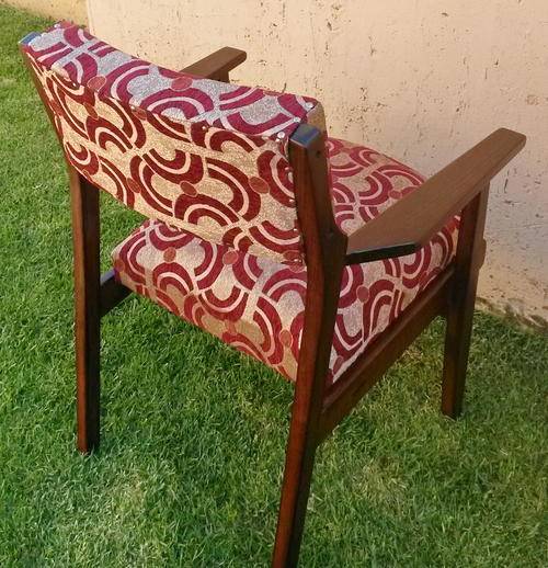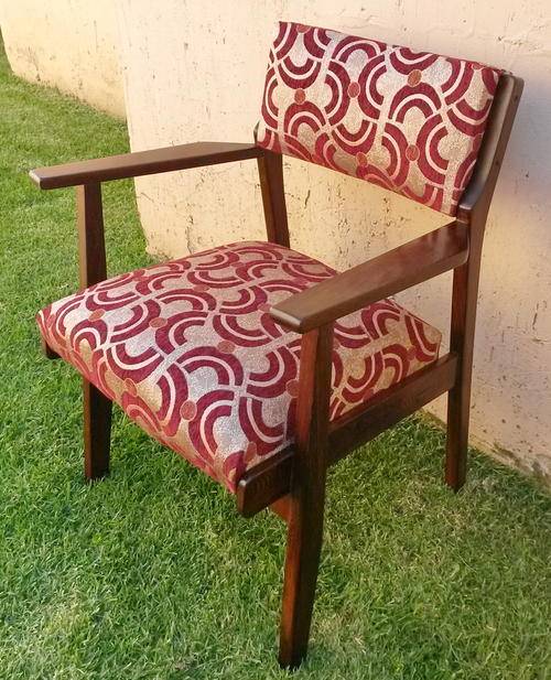 Description: Retro era PARTRIDGEWOOD COMFORTABLE ARMCHAIR WITH PADDED, UPHOLSTERED SEAT AND BACKREST. Condition: Very good used condition, recently refurbished. Very sturdy, brand new upholstery. Approximate size: 650mm wide x 510mm deep x 830mm high (back). Other: Slight colour variations possible between picture and real item. Please regard pictures as part of the description of the item.