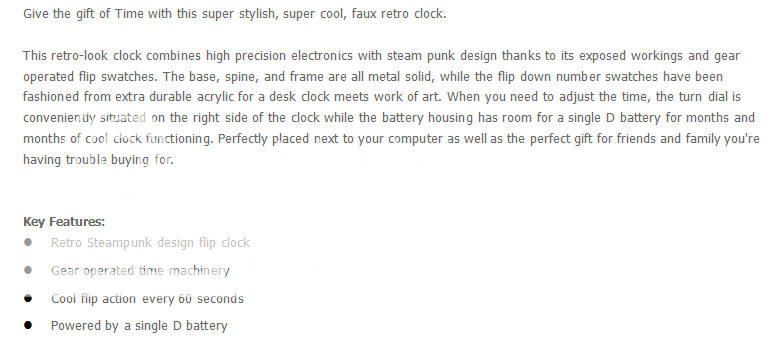 Retro Flip Down Steam Punk Design Style Clock - Cool Internal Gear Operated