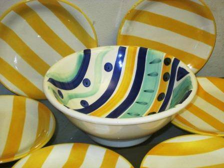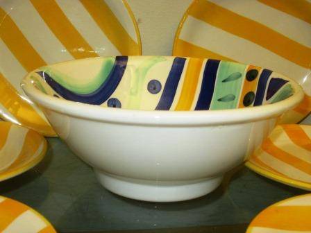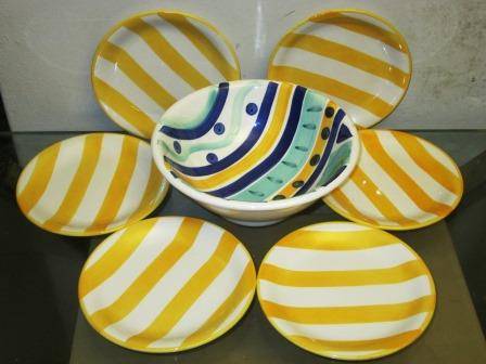 Retro mid century CJ Ceraminter of Italy hand painted 7 piece salad or pasta set