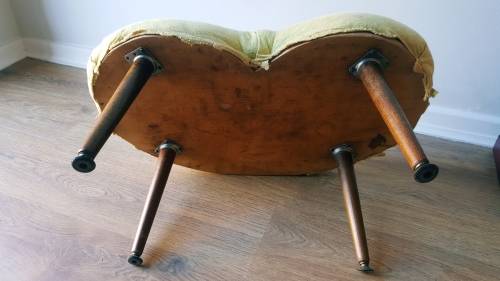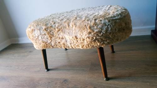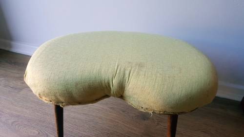 Retro Mid Century Kidney Footstool - Ottoman (Fluffy cover included), in rather good condition. Solid and sturdy. But there is some stains on the original cloth. ( see photos)