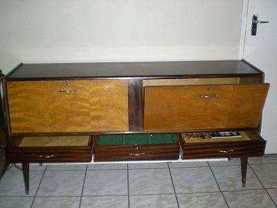 This sideboard is in very good contition dates back to the early 60s has three drawers and two side cupboards.Lovely tapered legs.