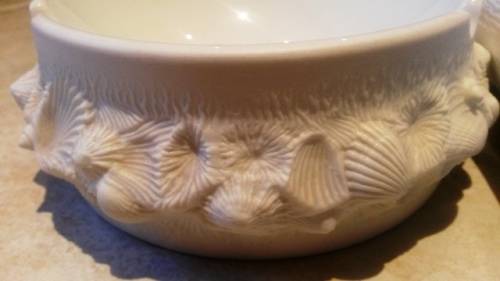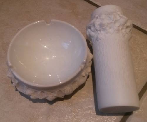 lovely shell pattern white "bisque" ashtray and retro vase - no chips or cracks these are not easy to find anymore and becoming very collectable - these look unused