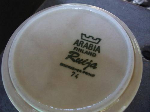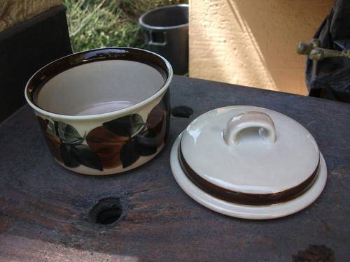 RETRO VINTAGE ARABIA FINLAND RUIJA TROUBADOR BOWL WITH LID FRUIT & LEAVES BROWN'S