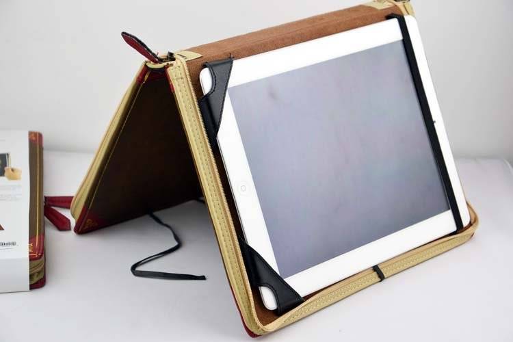 The BookBook Case for iPad is a hardback PU leather case that doubles as a fully adjustable stand. Along with its vintage looks, this case makes iPad feel like you are holding a real book, and in many ways you are holding a book. BookBook for iPad forms a safe cocoon around your prized iPad. The hardback cover and spine provide impact protection, while the hard protective inner frame offers crush protection. Hand distressed covers mean no two look alike. As a bonus, the unique design of this case disguises iPad for an extra level of stealthy security.