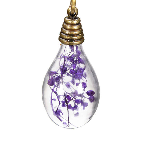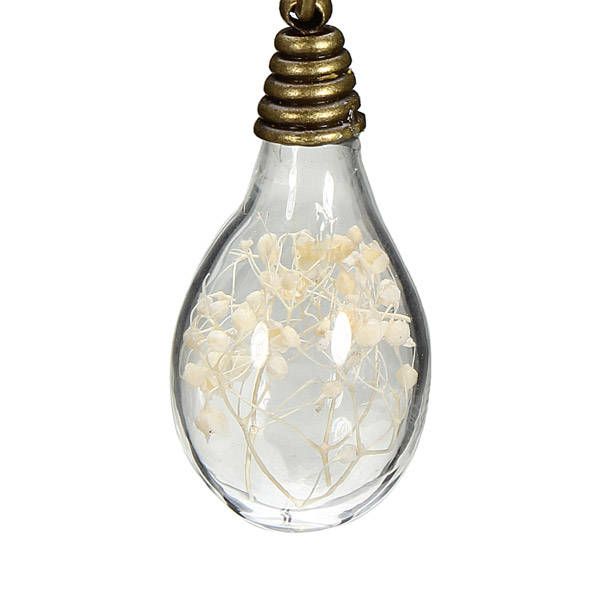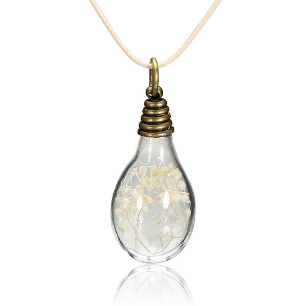 Retro Vintage Dry Flower Light Bulb Pendant Chain Necklace