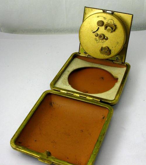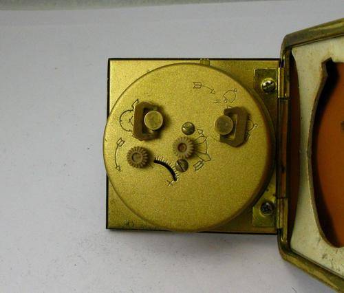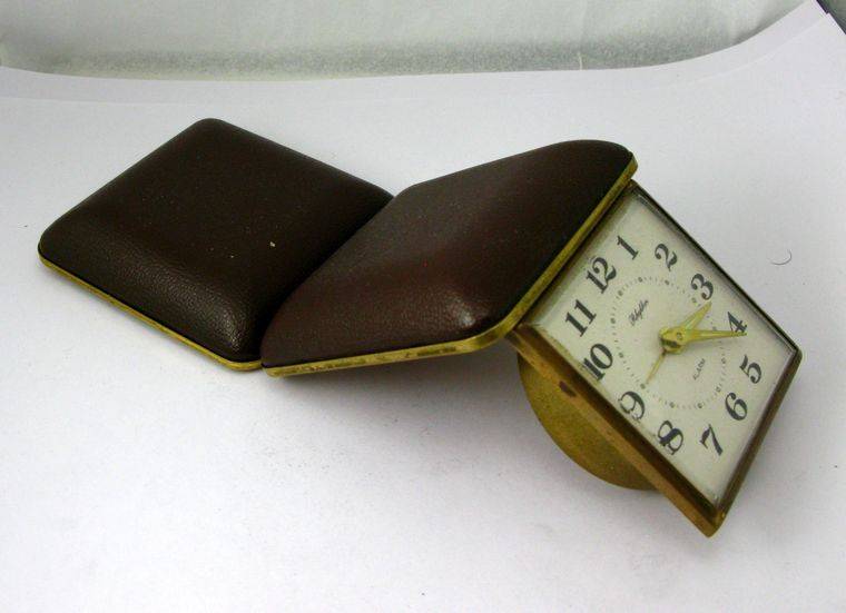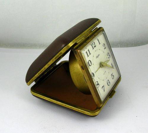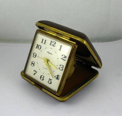 Retro Vintage Travel Alarm Clock "Rhythm". Size: in folded position is 78 x 75 x 40 mm. Condition: Good working order.