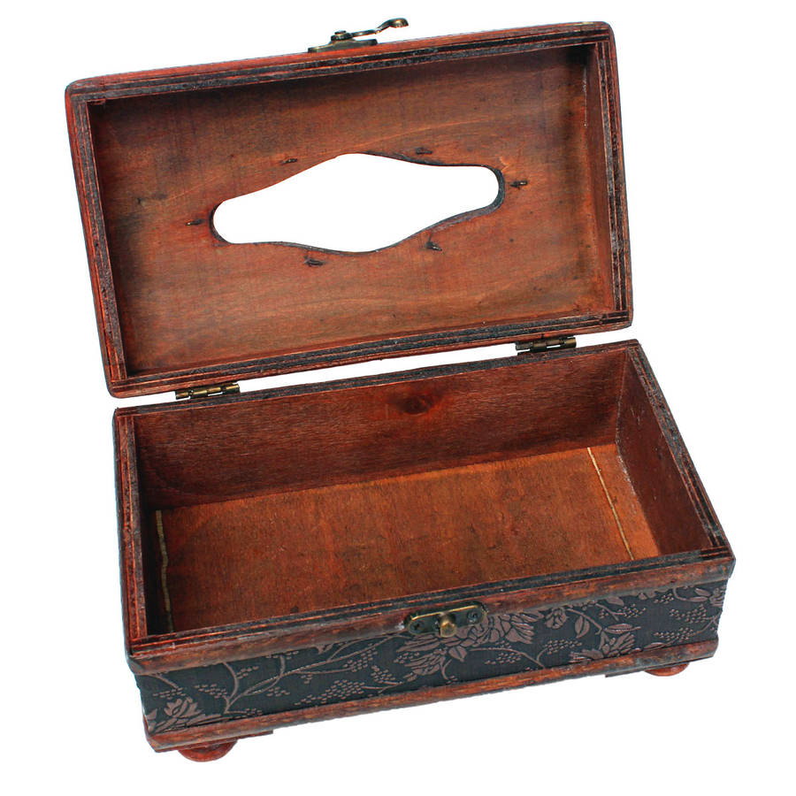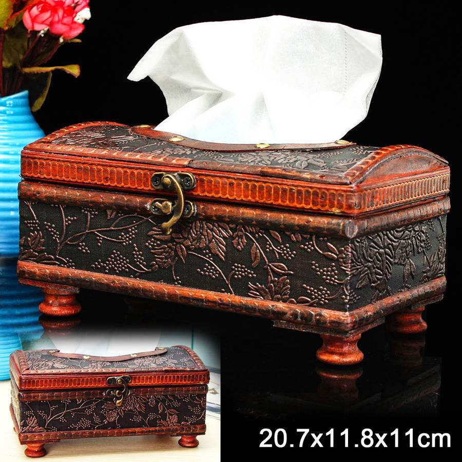 Retro Vintage Wooden Tissue Box Rectangular Paper Cover Case Napkin Holder Gift