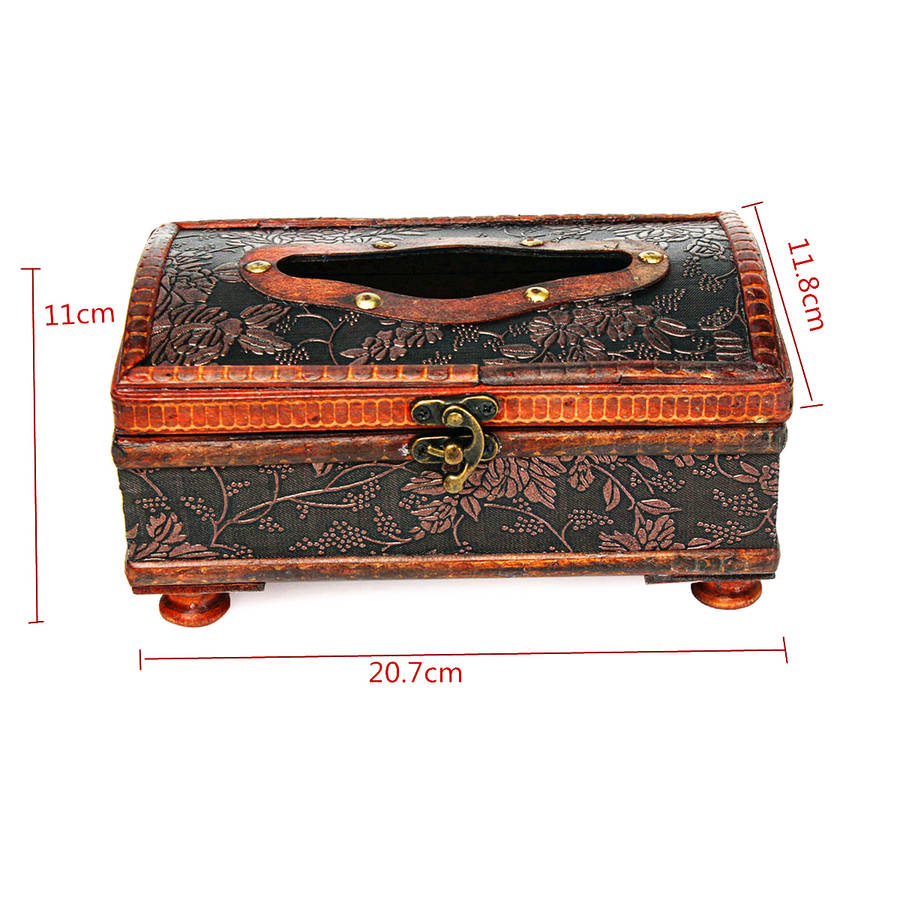 Retro Vintage Wooden Tissue Box Rectangular Paper Cover Case Napkin Holder Gift Kitchen Storage R...