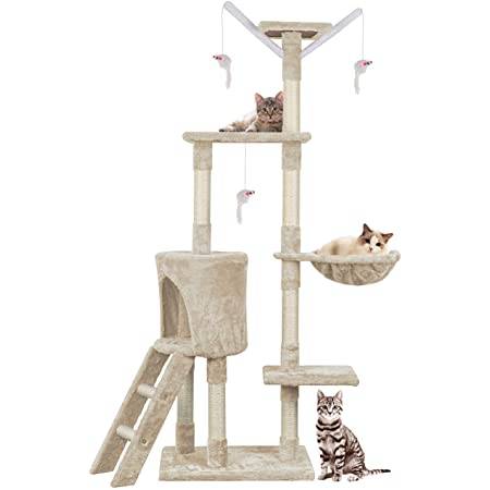 Rex - Deluxee Cat Tree Post. The Cat Tree Post is perfect for keeping your cat's nails nice and healthy. Also, it redirects them from scratching furniture or other areas. Plus, the scratcher palace comes with a few hanging toys for your cat to play with. Especially, with towering pillars to exercise your furry friends motor skills. Therefore, the Cat Tree Post entertains them for hours.