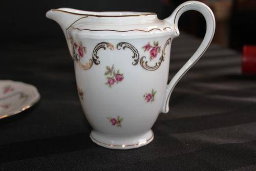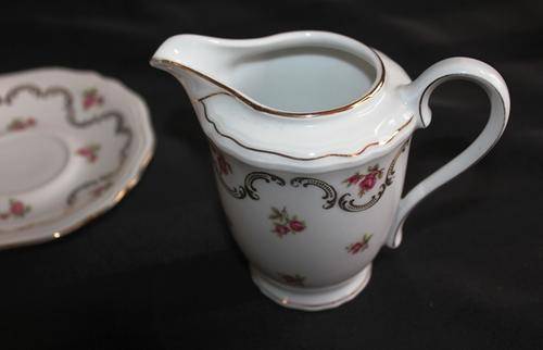 | -  Rheinkrone Bavaria Milk Jug + 3 saucers and a Lid without a jug made in Germany CONDITION: SOLD as FOUND - No damages - Please see ALL IMAGES below |