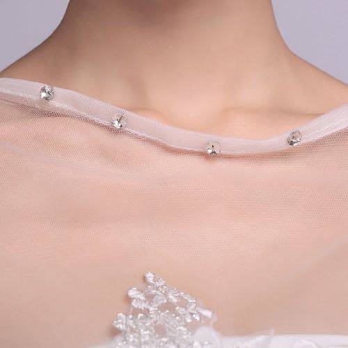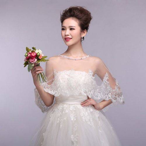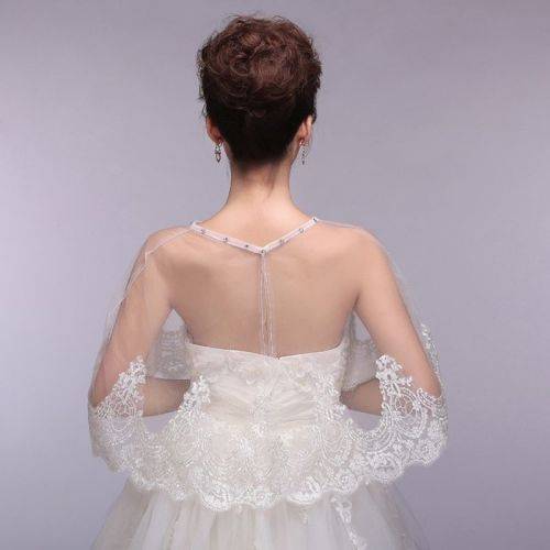 Elegant Wedding Bridal Bolero Lace Edge Shawl Cape Shrug Wrap with Rhinestone Detail