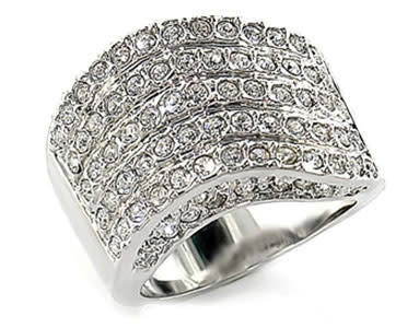 Five sparkling layers lined with clear imitation swarovski crystals decorate this lovely ring.