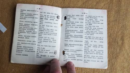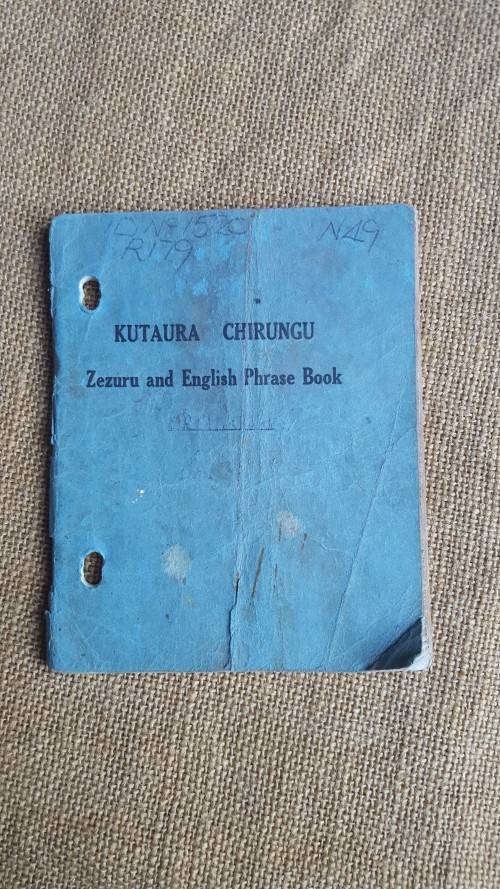 Here on auction we have a special & rare find; something special for those who really want to understand the old Africa and Rhodesian bush-war and delve deeper into the times - Rhod era language pamphlet "Kataura Chirungu" (Zezuru and English Phrase book) phrase book 60 pgs sml pocket size - Selous Scout related (Selous Scouts essential reading) - 61 pgs small pocket size - ID Nr on cover, pencil notes inside and also faded stamp (?) at back.