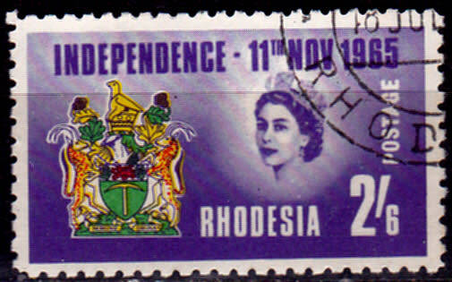 RHODESIA, 1965. Independence. Single issue, used, previously hinged. Hinge remains on back. View scans for condition as it form part of the description, CV R 3.50. Note, display card not included, and, the line across the images are due to the display card that we use to scan items.