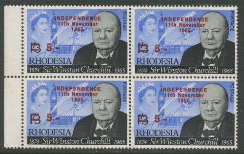 Churchill 5/-. UMM Marginal Block of 4 Note: Partial offsett on reverse. Scarce