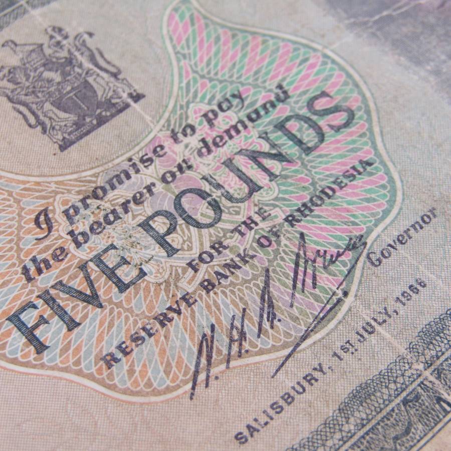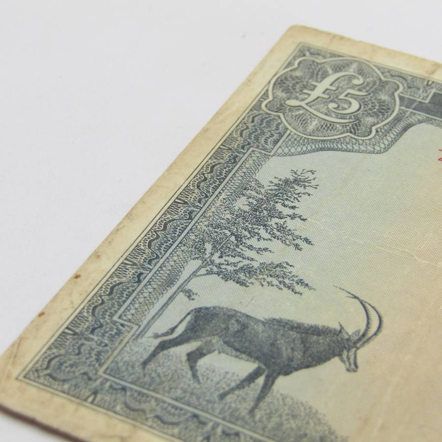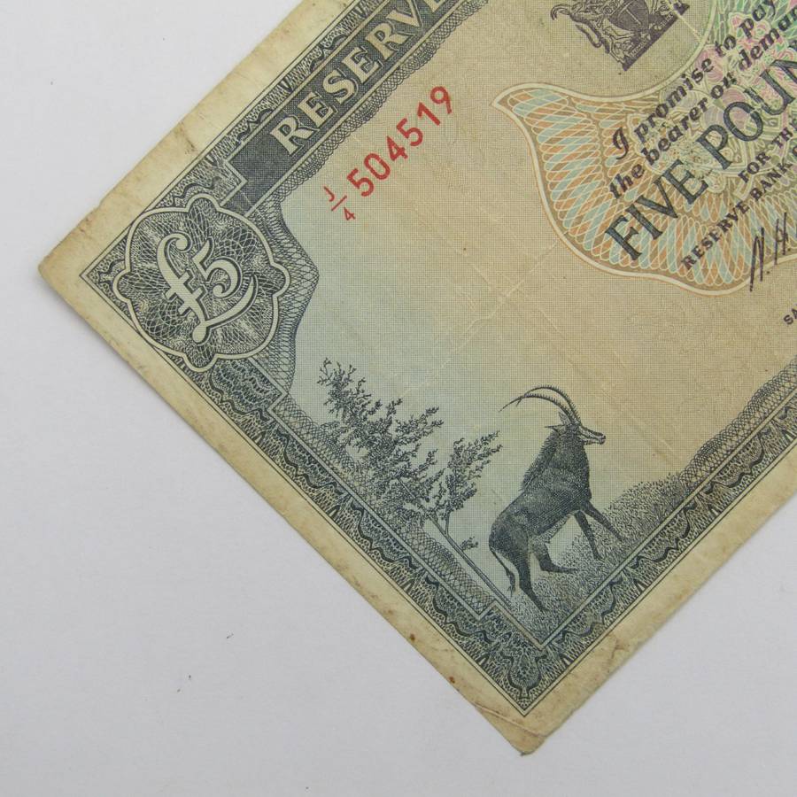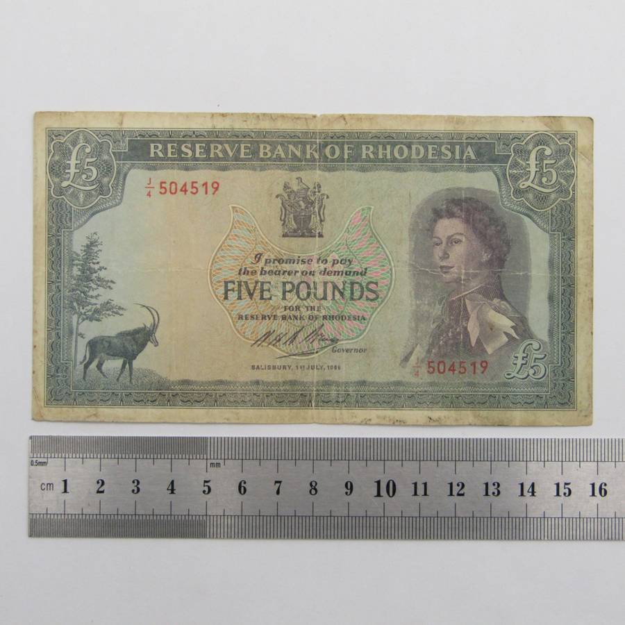 Rhodesia 1st of July 1966 Five Pounds banknote - well used