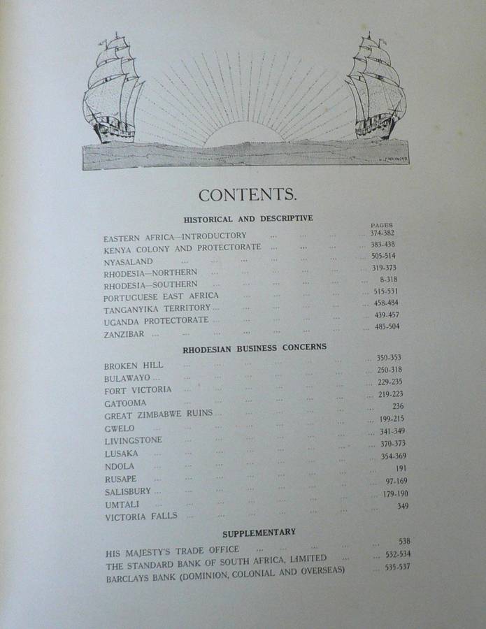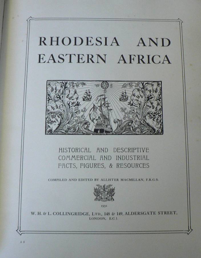 W. H & l. COLLINGRIDGE PUBLISHING, 1931. RHODESIA AND EASTERN AFRICA. HISTORICAL AND DESCRIPTIVE, COMMERCIAL AND INDUSTRIAL. BEAUTIFUL BOOK. SAIL BINDING. GILT EDGE PAGE ENDS.546 PAGES. LOTS OF PHOTOGRAPHS. A MEMORY OF A LOST COLONIAL AFRICA.