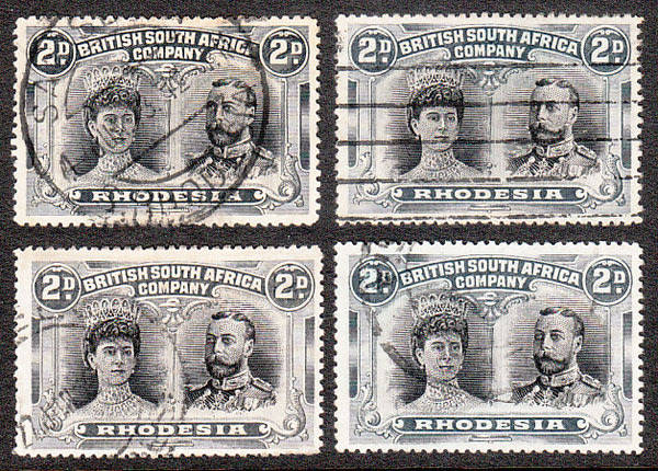 Rhodesia BSAC 1910-13 double heads 2d four shades fine used. Condition as per scan(s) which form part of the description.