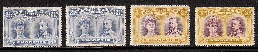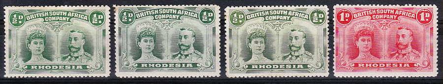 Rhodesia 1910 Double Heads mint range to 1/-. Most with imperfections. High catalogue value.