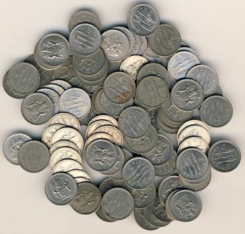 Rhodesia Lot of 100 two and a half cents kept in a Rhobank bag - You bid per coin to take all