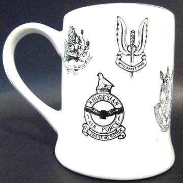 This mug has 9 badges of the Rhodesia Security Force on it.