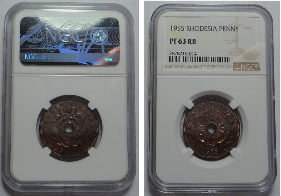 Rhodesia & Nyasaland: Penny of 1955: NGC graded PF 63 RB