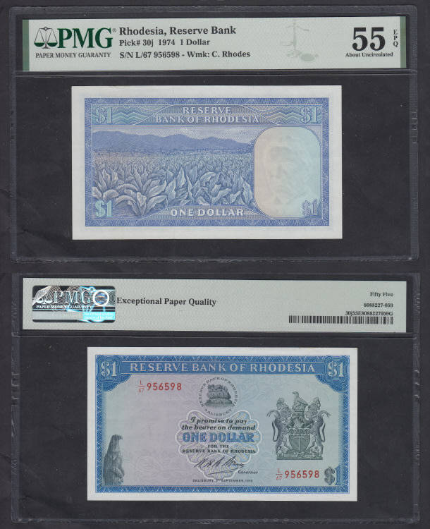 Rhodesia: One Dollar 2 September 1974 (PMG 55 About Uncirculated)