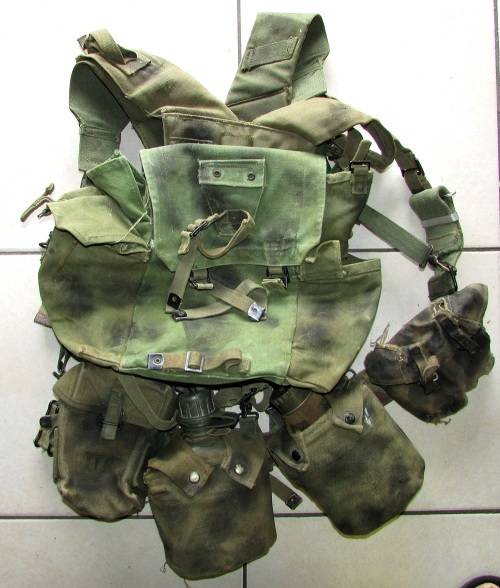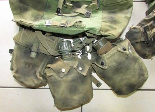 Yoke, Day Pack, 2 Water Bottles with Sachels,1 Dixy Belt, Wound Dressing, Syrette Holder US ammo Pouch and another Pouch