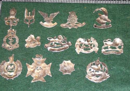 Rhodesian lot of 14 badges made for plaque attachment .None have lugs.SOLD AS A LOT.They look silver but think not.