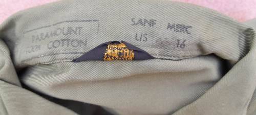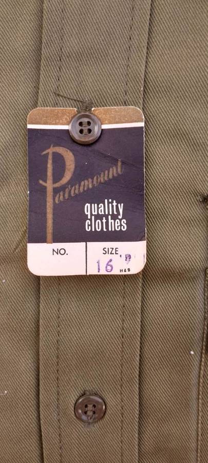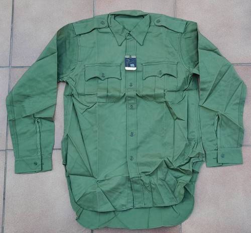 Green thick cotton Rhodesian Army long sleeve shirt, Paramount manufacturer's labels, in new and unused condition. Size 16 (large) Unusual to fnd in this condition. Courier R100.00