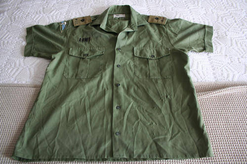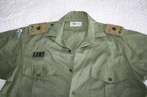 RHODESIAN ARMY OLIVE GREEN SHIRT WITH MAKERS LABEL - "FOCUS"
