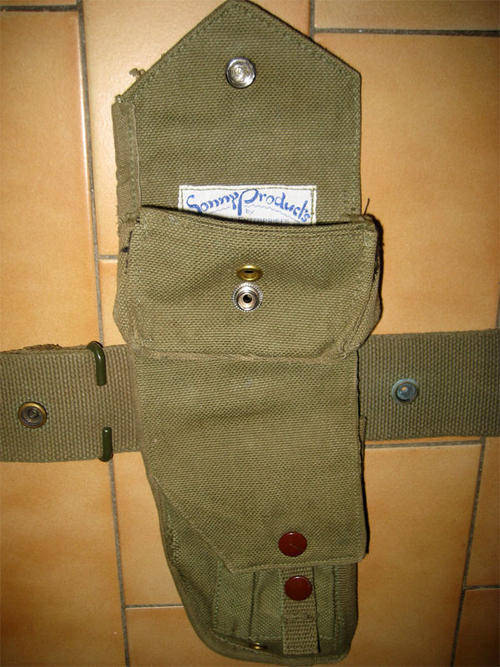 In excellent condition although a small piece of stitching has come loose on the one side (LHS of 1st photo) it is of no consequence to the use/aesthetic of the holster. There is a label in the ammo pouch of the holster - "Sonny Products by Harkin Enterprises, Salisbury"