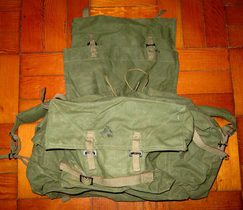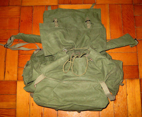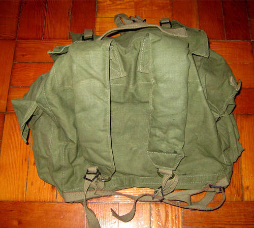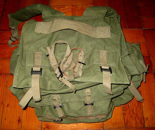 Rhodesian Military Canvas Back Pack. The pack is in excellent condition and has pockets all over the place with strapping clips and padded over the shoulder straps.