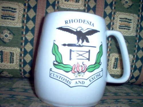 BACK TO THE GOOD OLD DAYS THIS OLD MUG WITH THE CREST OF RHODESIA CUSTOMS AND EXCISE MUST BE A COLLECTORS ITEM .IT MMEASURES 9CM ACROSS THE BASE AND IS 12CM DEEP, ON THE REVERSE IS WRITTEN WILLSGROVE WARE-POTTERY AND IT IS IN GOOD CONDITION.