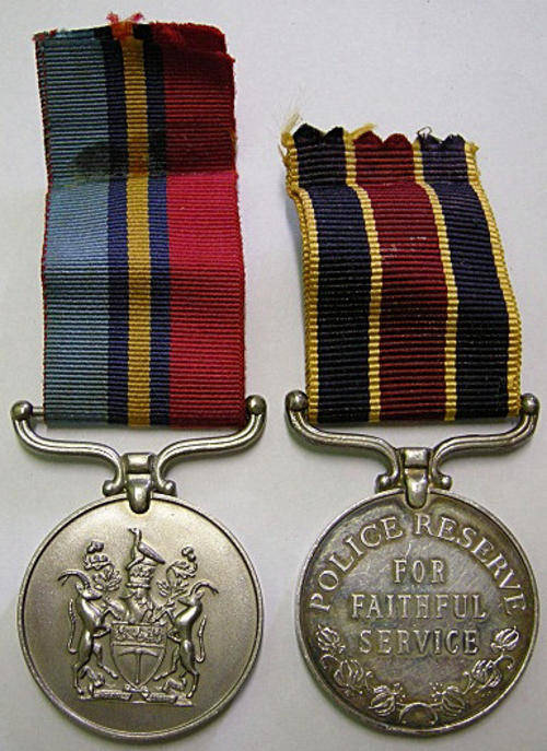 Rhodesian Police reserve and General service medals F/R Southey BR 12773H
