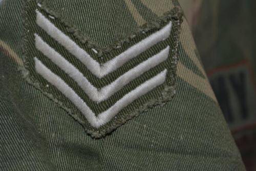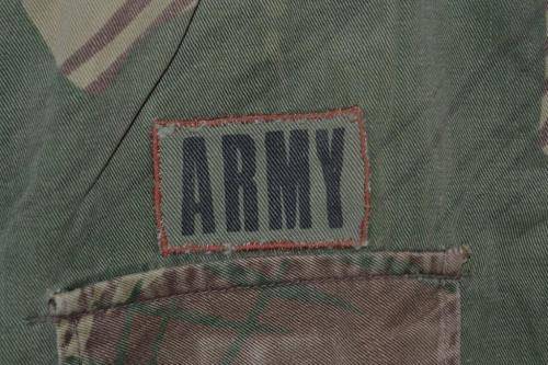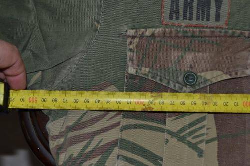 Up for auction is an original Rhodesian army Bush war Camo shirt. The shirt is in fair condition for its age and has the Army breast badge and Sergeant stripe on the breast and sleeve respectively. Please have a look at the pictures for sizes as measured across the breast under the armpits. Shirt is a bit faded from age and being used. Small spots on the back where the shirt has hooked on something. Partial makers label, I would guess it was made by Paramount?
