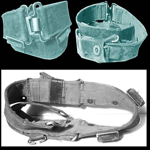 Additional Information supplied by Ian Lewis(Ile95549): "The belt is a UK Patt 44 item. These were issued in Rhodesia prior to UDI, when SA-sourced gear was obtained. The little loop at the side, closed with a 'Lift the Dot" snap, was for a first field dressing".