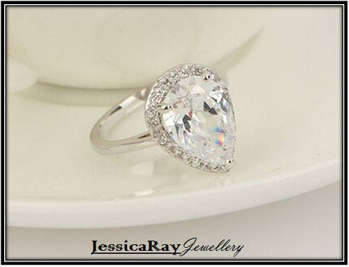 5.0 CT PEAR - SHAPED CZ RING: SILVER/RHODIUM PLATED