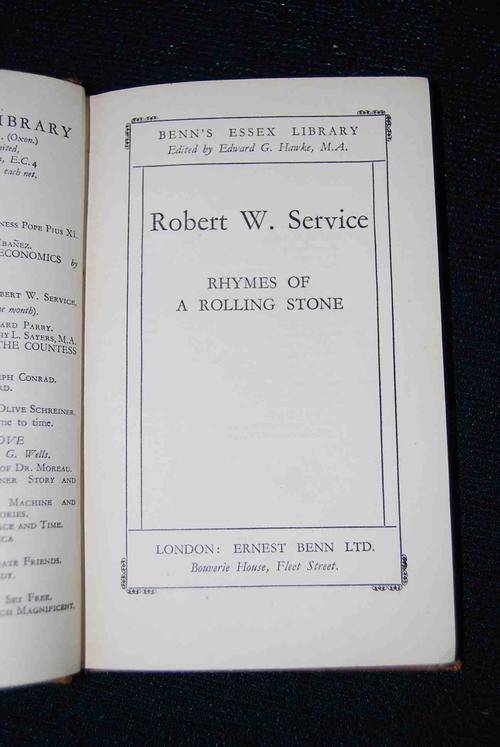 TITLE: RHYMES OF A ROLLING STONE BY ROBERT. W. SERVICE DESCRIPTION: HAS SOME EDGE WEAR AS IN PHOTO AND PREVIOUS OWNERS NAME ON INSIDE.1929 20TH IMPRESSION. FEEDBACK: I TYPICALLY WAIT UNTIL ITEM IS RECEIVED BY THE WINNING BIDDER PRIOR TO POSTING FEEDBACK. THIS ALLOWS BOTH PARTIES TIME TO RESOLVE ANY ISSUES THAT MAY ARISE WITH ANY GIVEN TRANSACTION. |
