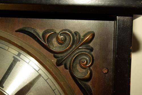 Rhythm 30 day wall clock. Missing its pendulum - which means that it does not keep time accurately at all and it gains at least 4 hours per day. The clock chimes on the hour and half hour. Complete - except for the pendulum. A winding key is included. Dimensions = 295 x 390 x 95mm. Postage will be R50 via SAPO.