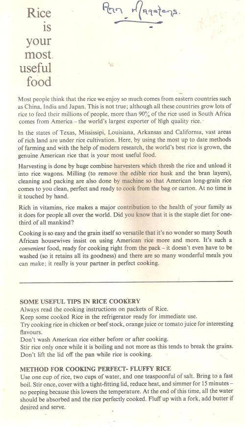 A softcover published by U S Rice