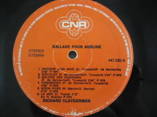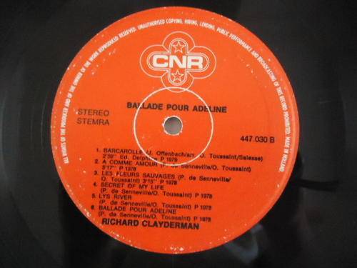 On offer is this RICHARD CLAYERMAN "BALLADE POUR ADELINE" -IMPORTED FRENCH CNR STEREO LP IN V/GOOD CONDITION!