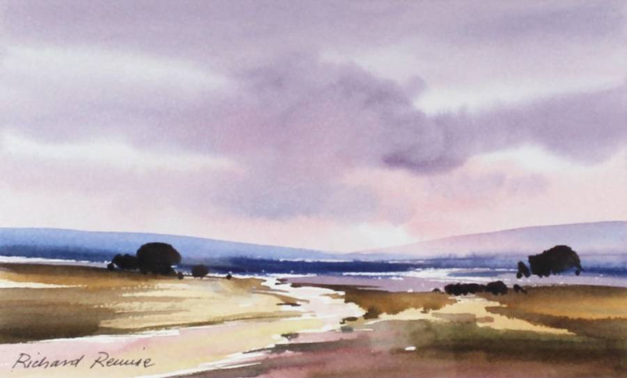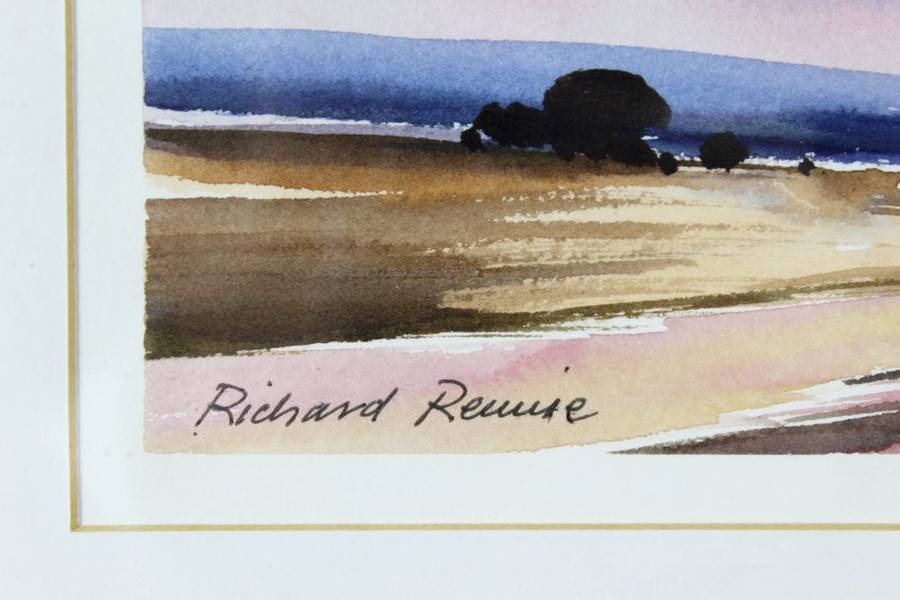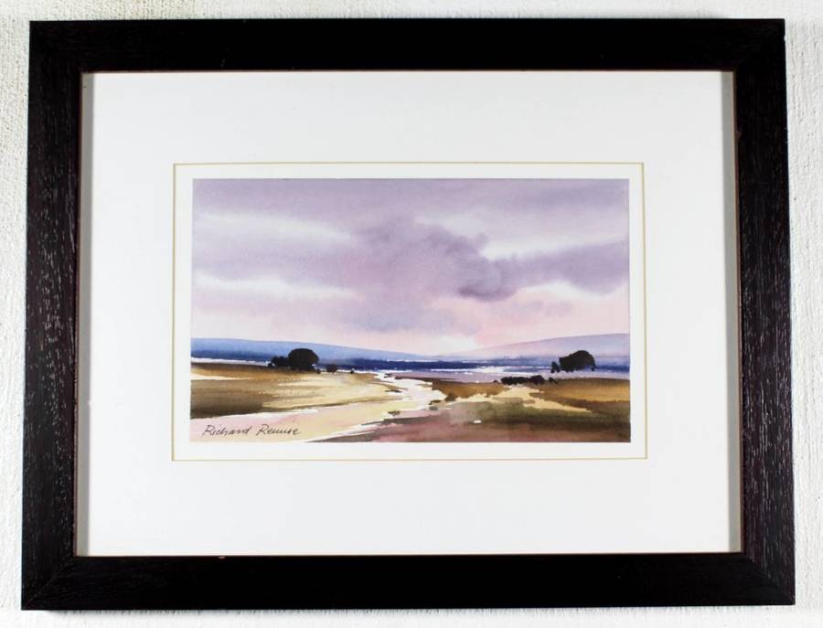 A beautiful little Richard Rennie watercolor. This river scene is rich in color and detail! The painting measures 27cm x 17cm and the frame measures 44cm x 34cm. Invest and bid now!