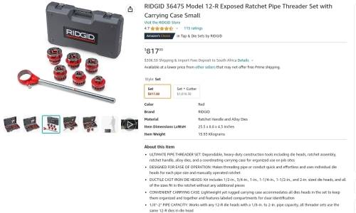 🏷 RIDGID Model 12-R Exposed Ratchet Pipe Threader Set