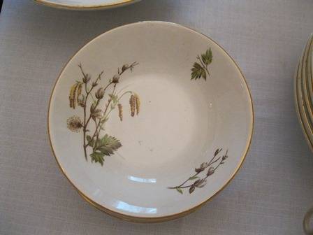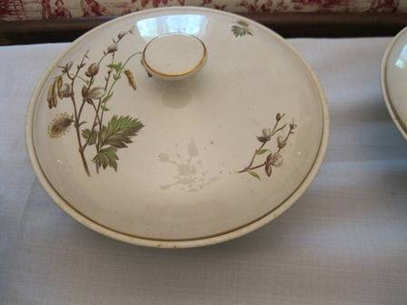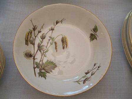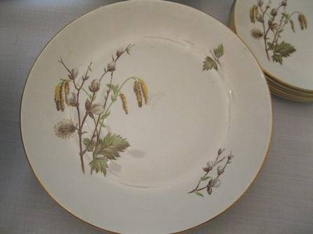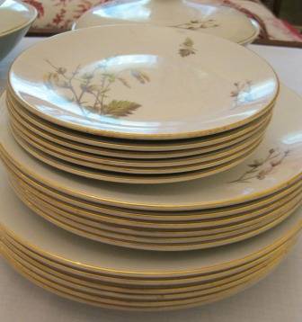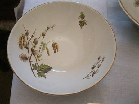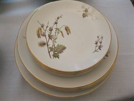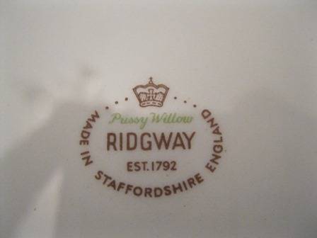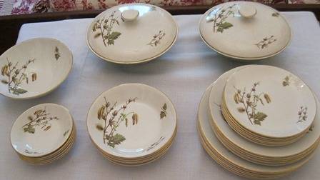 Ridgway made in staffordshire district in England since 1808. The transfer design Dinner Service Sets are the most widely known product. Ridgway became part of Royal Doulton in the 1960's. The set consists of: 6 Entree Plates, 6 Dinner Plates, 6 side plates, 6 pudding bowls, 6 soup bowls,1x large salad bowl, 2 vegetable bowls with lids, there are no chips or cracks.