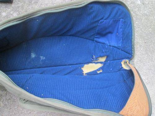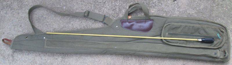 Long padded military-style rifle bag with shoulder strap. 120cm length. Olive green canvas. Includes cleaning rod and brush. Good used condition with some wear inside, please refer to pictures. Zip, clips and stud intact. Tracked P&P is R50.00.