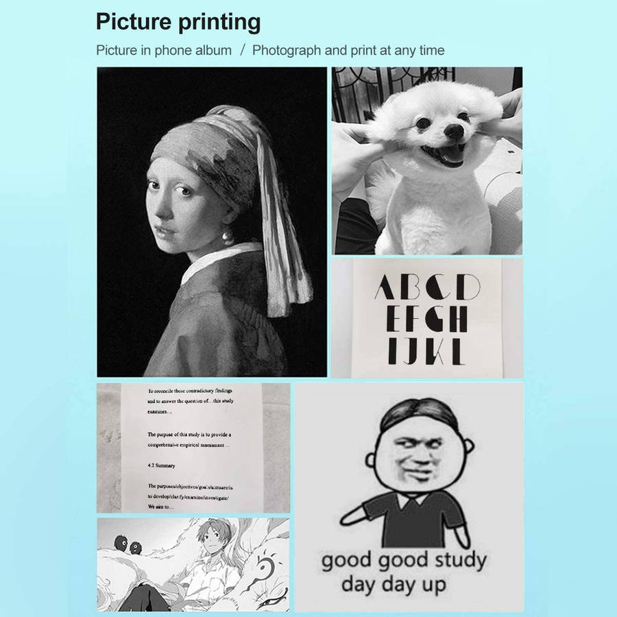 Specification: Name: Mini Pocket printer Product model: K1 Definition: 203dpi / HD 304dpi Appearance color: white, blue Dimension: 90 x 35 x 85mm/3.5 x 1.4 x 3.3in Applicable consumables: width 56-58mm, diameter within 30mm Printing mode: thermal ink-free printing Print connection: bluetooth, USB interface Imaging mode: monochrome (color heat sensitive paper is optional) Charging interface: Micro USB Power supply: 5V = 2A Features: - Save time in hand written notes, help learning, improve learning efficiency, print at a speed of 10mm/s, wrong questions are no longer cluttered, and learning has rules. - The product can be used to print learning materials for wrong questions, but also record the growth of children, the feeling of traveling. - Support for topic search, text recognition, and retrieval technology helps children to take pictures and upload questions for detailed question answering. - Using bluetooth direct connection technology, open the APP to connect to bluetooth and print freely. - The mini printer is featured with cute appearance and excellent performance. - Easy to use and carry, you can use this printer as gifts for your children to help their study. - bluetooth direct connection, wrong question printing, label printing, photo printing. - Compatible with WORD documents, work plans, and cheat sheets. Package Included: NO.01 / NO.02: 1 x Mini Printer 1 x Roll Of Printing paper 1 x USB Cable 1 x Box NO.03: 3 x Roll Of Printing paper Notes: 1. Please allow 1-3cm measuring deviation due to manual measurement. 2. Due to the different monitor and light effect, the actual color of the item might be slightly different from the color showed on the pictures. Thank you! |