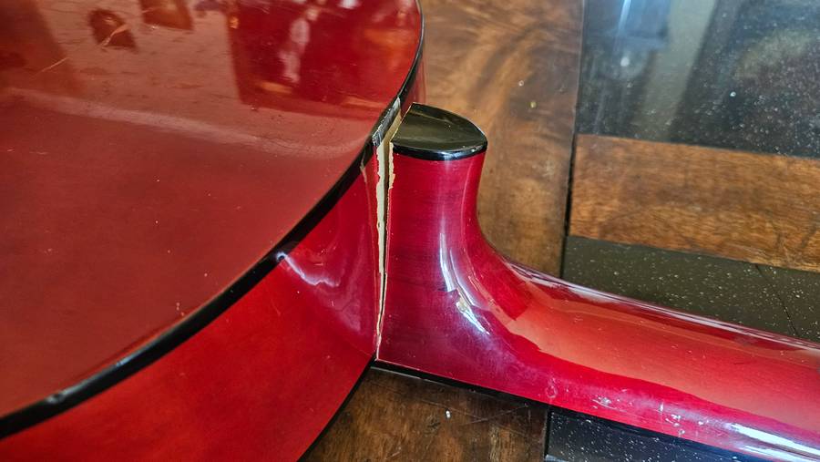 There is one turn screw that needs to be replaced. There is a crack as point out in the photos supplied. Selling as is.