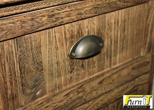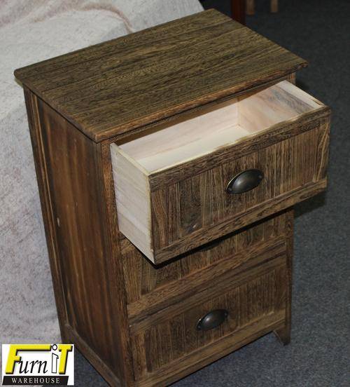 RIva Pedestal / Bedside Cabinet with THREE (3) Drawers - SOLID WOOD ("Wire brush" finish)